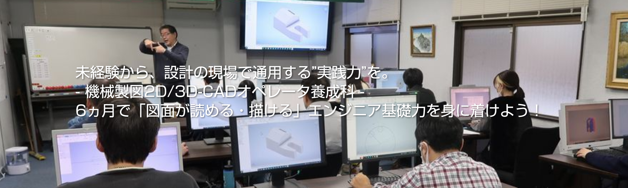 本訓練「機械製図2D/3D-CADオペレータ養成科」では、基礎から体系的に、”考える設計”を学びます。