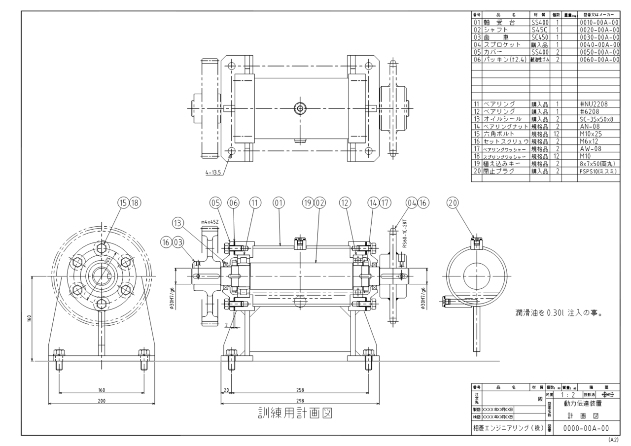 ただの単品部品のみならず、溶接構造品(軸受台)も盛り込まれ質と量がさらに増した内容となっております。チャレンジ精神を発揮して何度も繰り返して取り組んで身に付ければ、スキルの精度が確実に向上します。